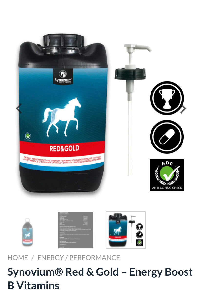 Red & Gold is a veterinary energy supplement for horses. Containing extra vitamins and minerals for when deficiency is present. Supporting optimal energy boost, performance and immune health.